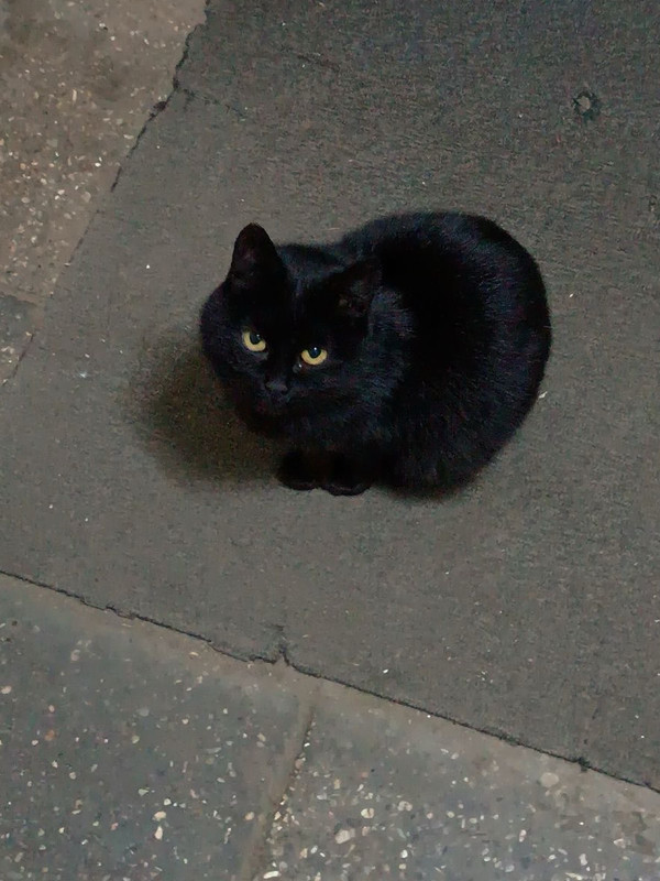 The little black cat pops completely out of the pumpkin, landing gently and silently on its soft paws.